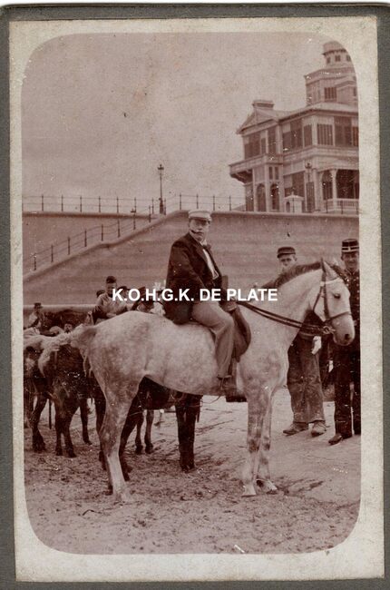 Burgemeester Adolf VAN GLABBEKE op de renbaan bij een "brabander" (?).