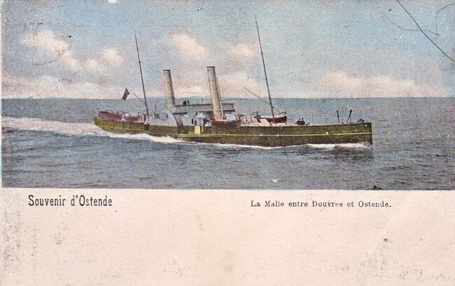 Postkaart VO-DW . - Ostende - Sortie de la malle (sic). - De pakketboot was in dienst op de Oostende Doverlijn van 1893 tot 1914.