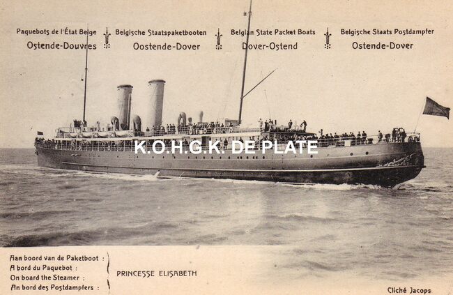 Postwaardestuk van 5 cent. -Paquebots de l'Etat Belge Ostende-Douvres. Aan boord van de pakKetboot Princesse Elisabeth. - Cliché Jacops