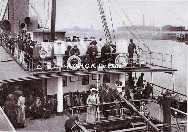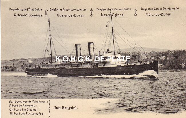 Afdruk, formaat : 21 x 29,5 cm. - De pakketboot "Jan Breydel" in de Eerste Wereldoorlog 1916. Op het einde van 1914 werden de schepen van het Zeewezen onder het beheer geplaatst van de Britse Admiraliteit en…