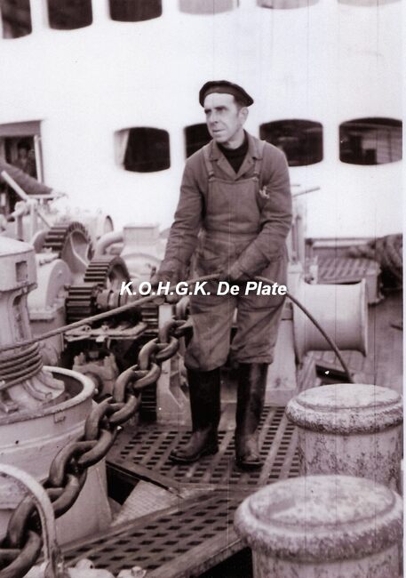 Afdruk, formaat : 18 x 12 cm. - Uiterst rechts, Deschepper G. (chief-steward)