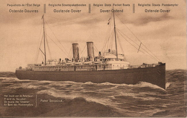 . Postwaardestuk 5 cent. - Paquebots de l'Etat Belge Ostende-Douvres. Belgische Staatspaketboten Oostend-Dover. Beglian State Packet BoatsDover-Ostend. Belgische Staats Postdampler Ostende-Dover. - Aan boord…