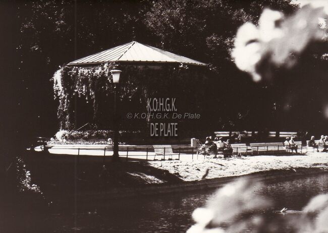 Het Leopoldpark na de overstroming 1953,de vijver is door het zeewater buiten zijn oevers getreden,en de kiosk is een eilandje geworden.