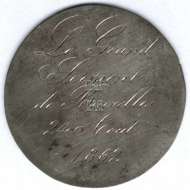 Op de voorzijde : centraal horizontaal LE GRAND / SERMENT / DE BRUXELLES / 24 AOUT / 1862