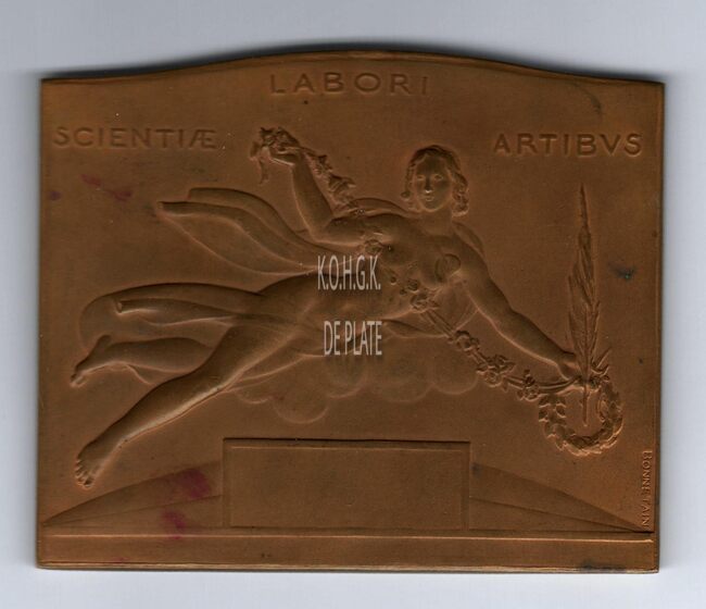 Het plaket is rechthoekig met gladde geprofileerde rand en is als volgt ingegraveerd