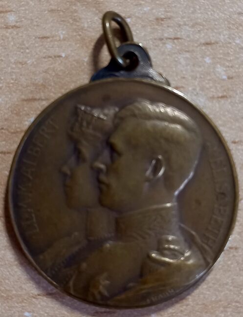 Op de voorzijde : Het borstbeeld van koning Albert I in gevechtstenue met helm, rechtsonder een gekroond initiaal A, signatuur E. De Bremaecker
