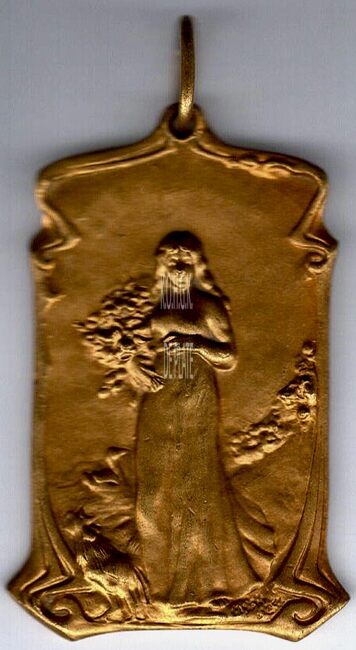 De penning is rond met gladde rand, met oog, en is als volgt ingegraveerd: