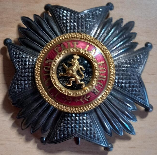 Draagteken als vierarmig kruis , sluiting achteraan, en is als volgt ingegraveerd: