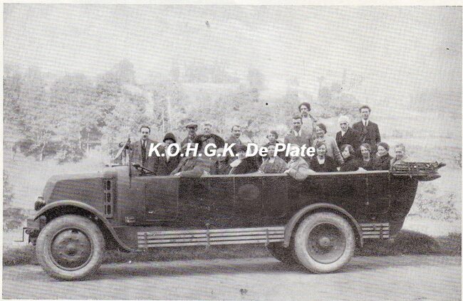 Foto 13 x 8.5. Paster Pype laatste reis naar Lourdes , (helemaal achteraan in de auto zit Paster Pype)