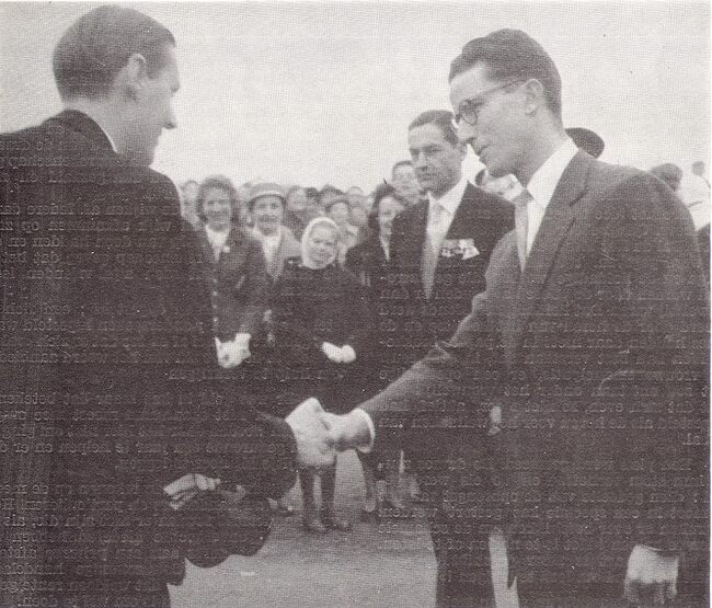 FOTO'SBLIJDE INTREDESOOSTENDE ; 1959ALBERT II (KONING DER BELGEN)PAOLA (KONINGIN DER BELGEN)PIERS JAN (1920-1998) (BURGEMEESTER)LAUWEREINS JOHN (1909-1985) (POLITICUS)VAN CAILLIE FRANCOIS (1909-1971) (NOTARIS POLITICUS)DEHOUCK KAMIEL (1908-1992) (POLITICUS)EDEBAU HENRI (1886-1964) (POLITICUS)DE KINDER ROGER (1919-1984) (POLITICUS PROVINCIEGOUVERNEUR)KONINKLIJKE VILLA