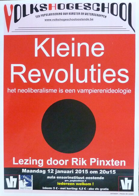 Affiche : Volkshogeschool. Kleine revoluties : lezing. Aula Ensorinstituut. 12/01/2015
