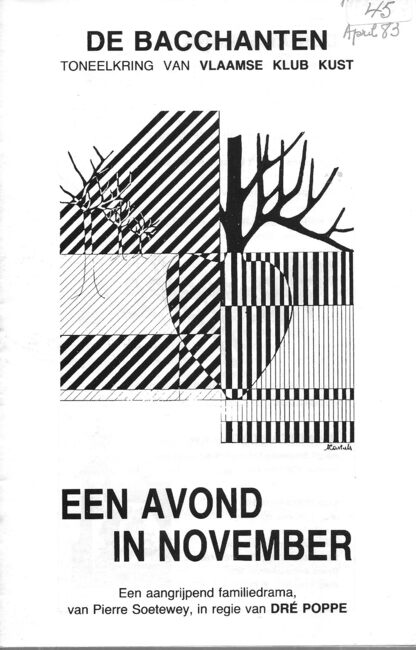 Formaat : 42 x 30 cm. Een aangrijpend familiedrama van Pierre Soetewey in regie van Dré Poppe. Met steun van het Noordstarfonds. Toneelkring van Vlaamse Klub Kust.