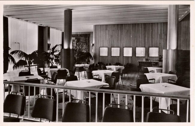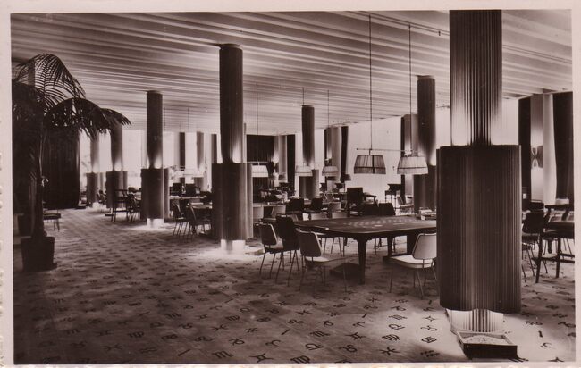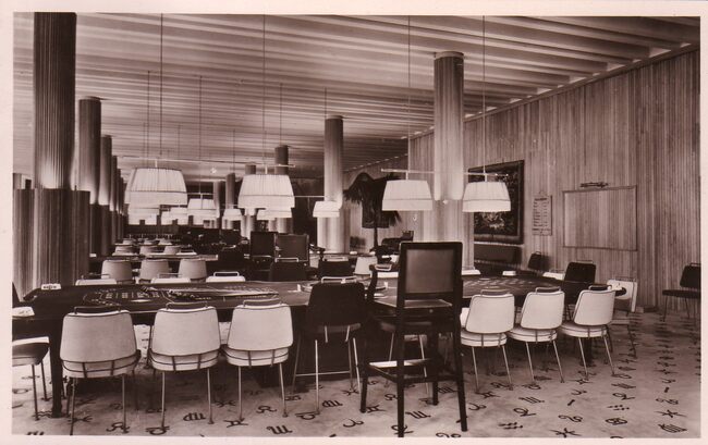 Postkaart Best. - Het restaurant van de speelzaal op het eerste verdiep