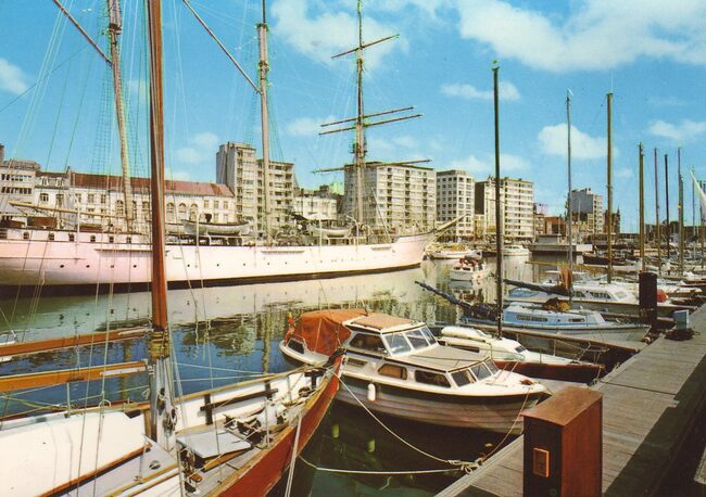 Cromo, N° 101/46. - Het tweede handelsdok of Mercator jachthaven, met vooraan pleziervaartuigen en het zeil- en schoolschip "Mercator" als museum. Op de achtergrond, de Vindictivelaan met het OLV College