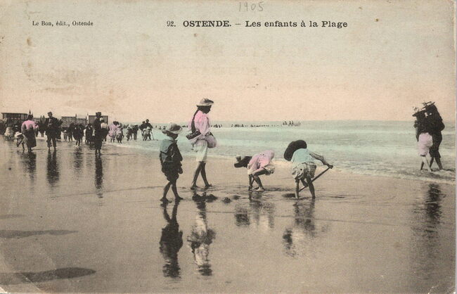 Le Bon, édit., Ostende, nr.92. - Ostende - Les enfants à la Plage. - Bijgekleurde kaart. - Strandrecreatie. Kinderen spelen aan de vloedlijn