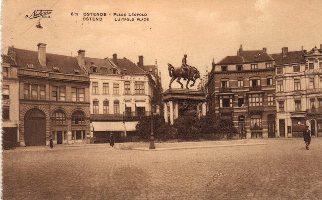 Nelson. Comptoir Artistique, 108, rue Victor Rautier, Bruxelles, N° 6/71. - Ostende - Place Léopold. Ostend. -Leopold Place -. Gedeelte van het plein, gelegen tussen de Warschaustraat en de Van Iseghemlaan. Het donkere…