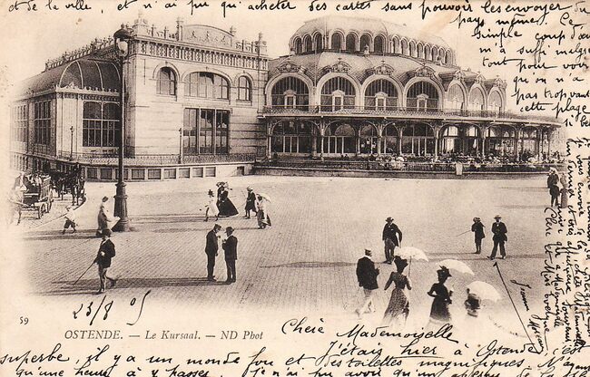 [Neurdein], ND Phot, N° 59 - Ostende - Le Kursaal. - De noordgevel van het tweede Kursaal langs de Zeedijk. Links, één van de eerste elektrische verlichtingspalen.