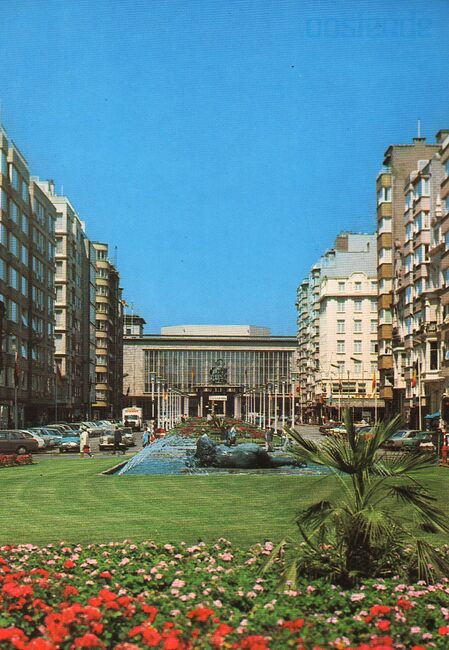Pluscolor, N° OS 3. - Oostende - Albert I Promenade. - De Albert I-promenade vanaf de badinstallaties richting de westgevel van de Kursaal. Een gedeelte van de woontoren "Europacentrum" in de Van Iseghemlaan.