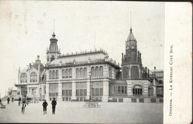 Postkaart VO-DW. - Ostende - Kursaal. - De westgevel van het derde kursaal, gelegen langs de Zeedijk, nabij "Petit Nice".
