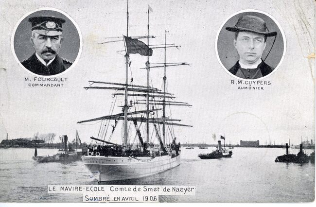 Van Os-De Wolf. - Le navire-école Comte de Smet de Naeyer sombré en avril 1906. Gustave Adolphe Fourcault (foto links) was de commandant op het eerste opleidingsschip Comte De Smet de Naeyer. Het zeilschip verging…