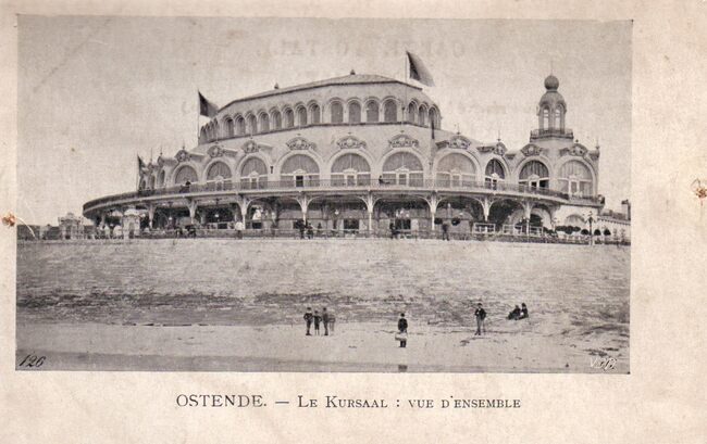 VED 126.[Impr. V. Ernult-Doncq, 20, rue des Chartreux, Bruxelles]. Ostende - Le Kursaal : vue d'ensemble. De noordgevel, Zeedijk en "groot strand".