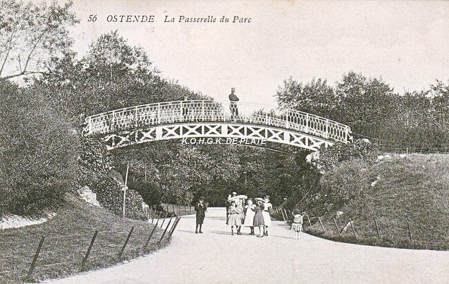 Ostende - La passerelle du parc. - De ijzeren brug die voor de verbinding zorgde tussen de Trinkhall en de fontein