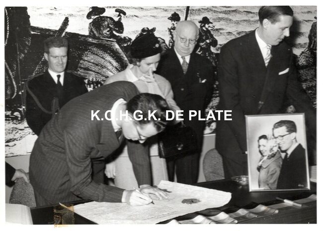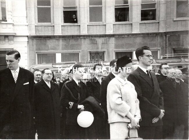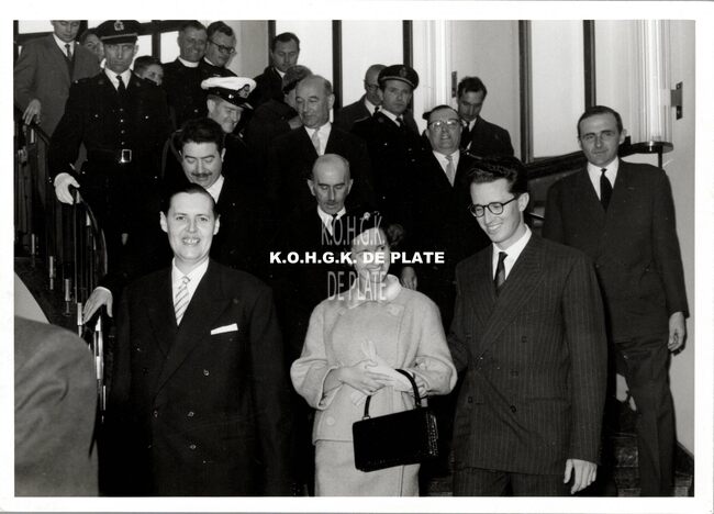 FOTO LUCFABIOLA (KONINGIN DER BELGEN) (1928-2014)BOUDEWIJN (1930-1993) (KONING DER BELGEN)PIERS JAN (1920-1998) (BURGEMEESTER)VAN OUTRYVE D'YDEWALLE PIERRE (1912-1997) (GOUVERNEUR)LAUWEREINS JOHN (1909-1985) (POLITICUS)DE KINDER ROGER (1919-1984) (POLITICUS PROVINCIEGOUVERNEUR)DEHOUCK KAMIEL (1908-1992) (POLITICUS)POULLET EDMOND (BURGGRAAF) (VICE-ADMIRAAL ZEEMACHT)STADHUIS ; PLECHTIGHEDENHEGER CHARLES (1902-1984) (MINISTER)