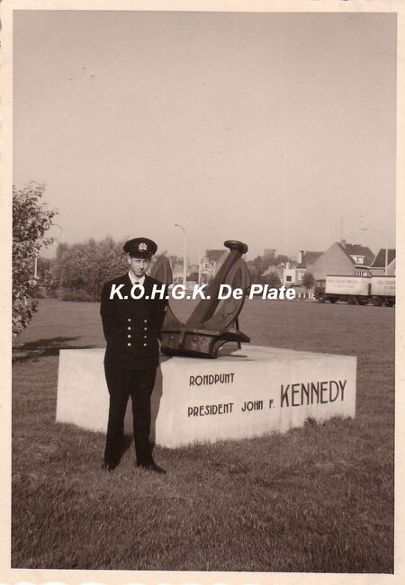 Foto 7 x 10. Mr Van Der Elst Juuri in uniform van de zeevaartschool Oostende. Foto genomen aan het Kennedy rondpunt