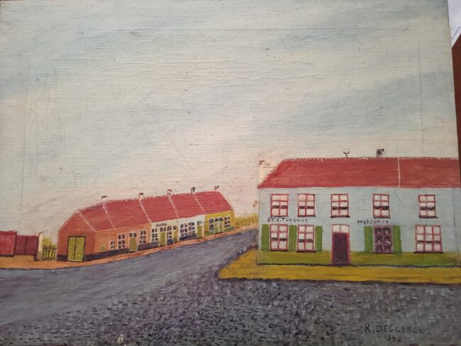 Formaat : 17 x 12 cm. - Onthullen en zegenen van de gedenkplaat in de verkoopzaal door pastoor Georges Borre, Kannunik Felix Van Den Berghe