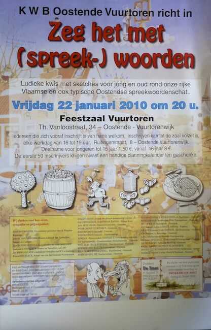 Affiche : K W B Oostende Vuurtoren. Zeg het met (spreek-)woorden. Feestzaal Vuurtoren. Vrijdag 22 januari 2010