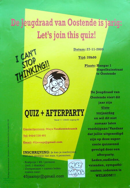 Affiche : Jeugdraad van Oostende. Let's join this quiz !. Hangaar 1 Oostende. 27/11/2009