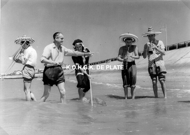 Formaat : 13 x 18 cm. - Beiden met enkele muzikanten, langs de Franse kust ?