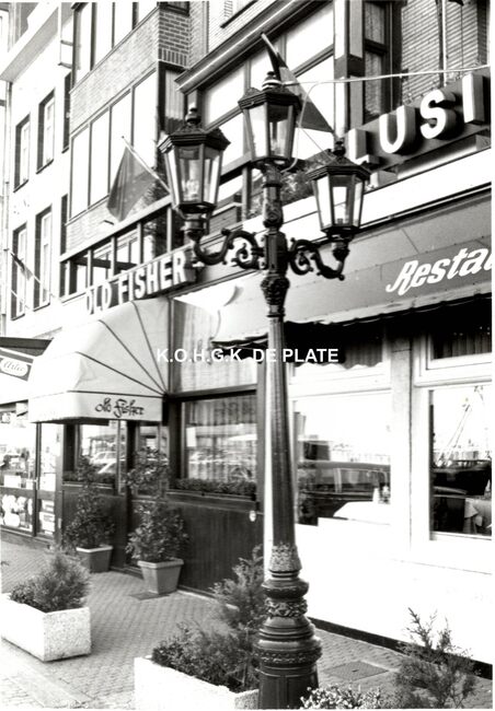 Formaat : 13 x 18 cm. - Een groep bejaarden van het Zeemanshuis Godtschalck op een etentje in restaurant Lusitania aan de Visserskaai. Rechts de uitbater Camiel Vanmassenhove die hen uitnodigde.