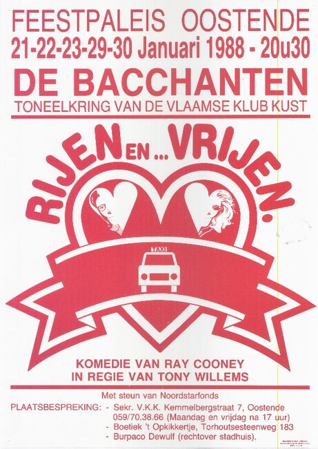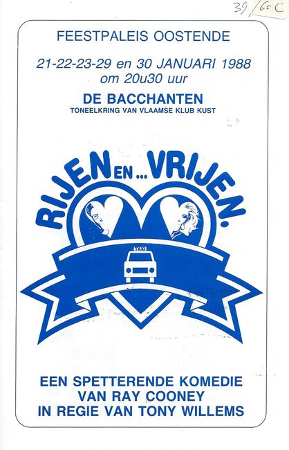 Formaat : 42 x 30 cm. Komedie van Ray Cooney in regie van Tony Willems. Met steun van het Noordstarfonds. Toneelkring van Vlaamse Klub Kust.