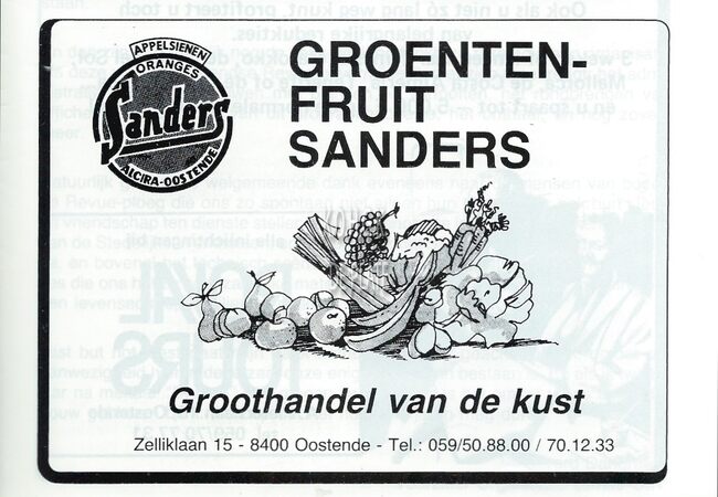 Advertentie : Groenten-Fruit Sanders. Groothandel van de kust. Zelliklaan 15, Oostende