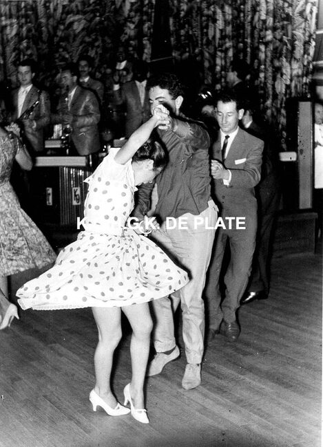 Formaat : 18 x 13 cm. - Hier in de nightclub "La Champagne". Onder voorbehoud : Guy Béjart danst met Catherine Sauvage. Zie ook : 2020/3304