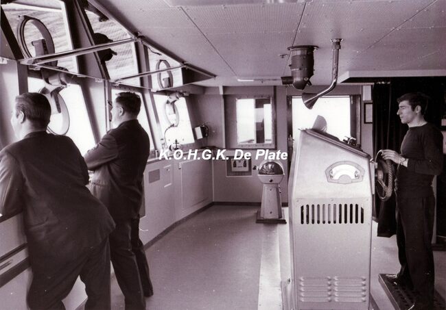 De brug van de Artevelde. Vooraan links staat commandant Spoelders. Links vooraan de telegraaf en in het midden het magnetisch standaardkompas