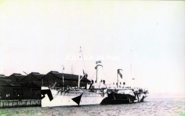 Afdruk, formaat : 29.5 x 21 cm. - De pakketboot "Leopold II" in de haven van Southampton gedurende de Eerste Wereldoorlog
