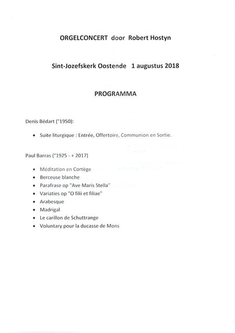 Programma : Orgelconcert door Robert Hostyn. 2018