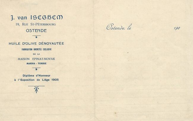 Een praalwagen komt uit de Sint-Peterburgstraat en gaat de Van Iseghemlaan op. In het gebouw achter de wagen : Rougets Hotel Beau Sejour, later het Ministerie van Financiën. (Belastingen, Registratie, Domeinen enKadaster…