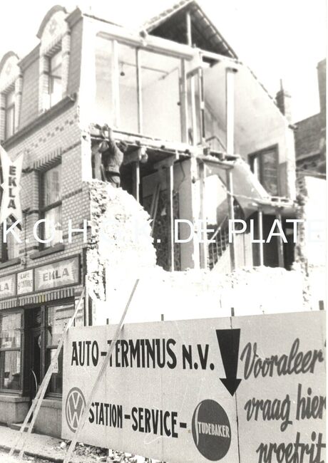 Formaat : 15 x 10 cm. - Het hoekpand, hier gesloopt, voorheen "Hotel Flandria" maakt plaats voor Residentie "Le Neuilly" en de winkel "Deweert Sport" in de Hendrik Serruyslaan en enkele…
