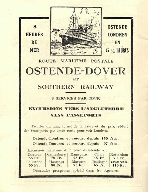 Advertentie : Route Maritime Postale Ostende - Dover et Southern Railway