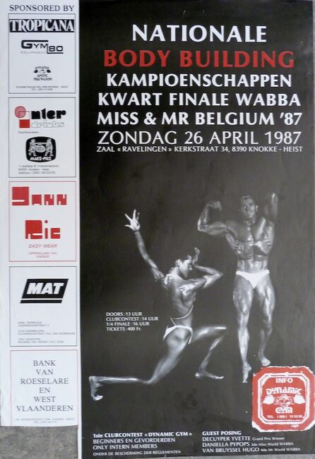 Affiche : Nationale Body Building kampioenschappen. Zaal 'RAVELINGEN'. Zondag 26 april 1987.