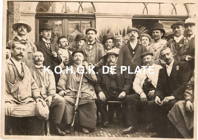 Zwart/wit foto Antony 240329-1. - Formaat : 24 x 30 cm (2013/1067). – Groepsfoto van de schutters van de Sint-Sebastiaansgilde. De gilde werd opgericht in 1302 en is de oudste vereniging van Oostende. Zij heeft haar…