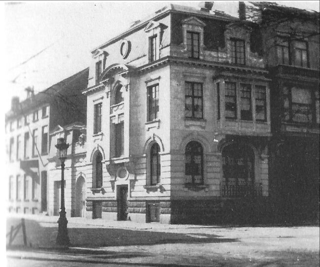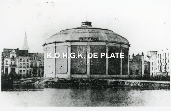 Formaat : 10,5 x 15,5 cm. - Opschrift : Bataille de l'Yzer. Het gebouw was gelegen op het deels gedempte derde handelsdok. Hoek Stockholmstraat en Vindictivelaan