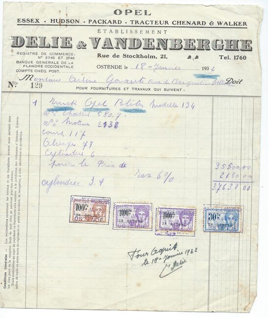 Opel - Essex - Hudson - Packard - Tracteur Chenard en Walker