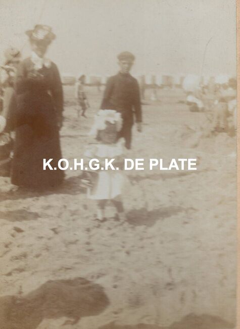 Vergroting. - Formaat : 29,5 x 40 cm. - Genieten van de zon op het Klein Strand. Rechts het Weststaketsel