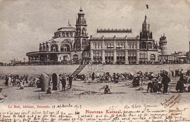 Le Bon, éditeur, Ostende. - Ostende - Nouveau Kursaal. - Strandrecreatie op het Groot Strand nabij de westeljke gevel van het derde Kursaal langs de Zeedijk