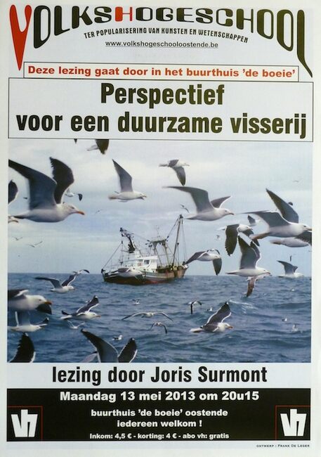 Affiche : Volkshogeschool. Perspectief voor een duurzame visserij. Buurthuis "De Boeie" Oostende. 13/05/2013.