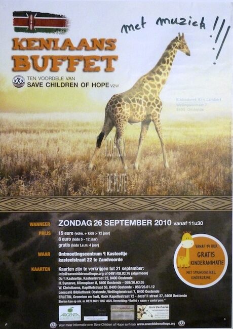 Affiche : Save Children of Hope vzw. Keniaans buffet. Ontmoetingscentrum 't Kasteeltje. 26 september 2010.